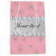 Sacola Para Presentes Média Rosa de prata chique dos flocos de neve do brilho