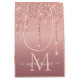 Sacola Para Presentes Média Rosa Dourada Glitter Personalizar o Nome da Letra