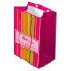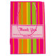 O design é ousado, vivo e chique, com faixas de rosa quente, rosa rosa, laranja profundo, verde limão cítrico e amarelo ensolarado, juntamente com dois campos de tipografia personalizáveis que atualmente leem "Obrigado" e "Obrigado por fazer parte da nossa celebração de aniversário! Desejando-lhe um dia fantástico pela frente." Este saco de presentes adaptável é perfeito para qualquer evento especial, seja um aniversário ou uma celebração festiva, adicionando um toque de alegria e elegância ao seu presente. Para solicitações ou perguntas especiais, entre em contato com o artista em wafadahdalcreates@gmail.com. © Wafa Y. Dahdal - Todos os direitos reservados.