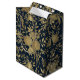 Sacola Para Presentes Média Rosas Dourados Elegantes Marinho Floral - Design A