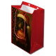Individually designed Christmas gift bag featuring a vintage style painting of a Rottweiler holding a Christmas bauble which says 'Happy Christmas'.