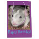 Torne o Aniversário presente fácil com este saco de presentes com o texto 'Parabéns!' e um Rouco de bebê giro, Rato Dumbo, direitos autorais de fotografia Mindgoop Todos os lucros ajudam o Alto Pico de Resgate a resgatar e cuidar de ratos no Distrito de Pico, Inglaterra.