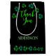 Rua Patrick Day Aniversário Permite Festejar Shamrock Gift Bag. Green Sparkles Shamrock em preto personalizado. O dia verde de São Patrício brilha no trevo. Foto de faíscas, não brilho real!