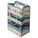 Rustic celestial stripe pattern gift bag featuring moon phases, sun symbols, and tribal-inspired details in earthy teal and clay tones. A calm, grounding design ideal for boho lovers, spiritual creatives, and nature-inspired interiors. A thoughtful gift for moon watchers, astrology fans, and earthy souls.