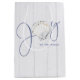 Saco Gift Gift Gift da Marinha de Natal russa, apresentando uma tipografia festiva e elegante da alegria para o mundo usando uma casca náutica de aquarela como o "o" na Alegria.