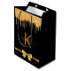 Sacola Para Presentes Média Saco de favor Monograma preto dourado brilhante ob