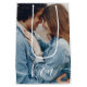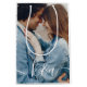 Parabéns a um casal especial com este lindo saco de presente de foto personalizado! Perfeito para casamentos, chá de noiva e noivados! Eles também seriam ótimos sacos de presente de hotel para convidados de casamento!