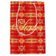 Um saco de presentes elegante de tamanho médio, o fundo vermelho do celeiro pode ser mudado para qualquer cor. O texto da irmã pode ser mudado para qualquer nome ou o texto pode ser removido.