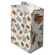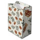 Saco de presente de Natal com galhos folhas verdes flocos de neve branco fundo tradicional cores de Natal