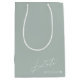 Saco de presente de dama de honra personalizado com design moderno minimalista em verde sage e branco.