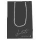 Saco de presente de damas de honra personalizado com design moderno minimalista cinza escuro e branco.
