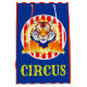 Perfeito para quase todas as comemorações! Um ousado Tigre do Circo salta através de um anel de fogo com Big Top Red e White Stripes! Texto: Circo Visite PartyFatory Collections para combinar suprimentos do Circus Tiger!
