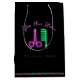 Dê um brilho ao seu jogo de embalagens. Esta bolsa de presente para salão em estilo neon que chama a atenção é a maneira perfeita de transmitir uma marca de beleza ousada em cada interação com o cliente. Com tesouras rosa vibrante, ícone de pente verde elétrico e texto personalizável do salão, este design irradia confiança e criatividade.