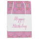 Personalize o texto feliz de aniversário para qualquer ocasião especial neste saco decorativo de presente desenhado em rosa, chato e uma fria de marrom. O texto também é removível se você preferir, e o fundo cor-de-rosa pode ser mudado para qualquer cor para complementar seu estilo.