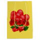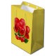 Expresse seu amor com esta bolsa de presente romântica. Com balões vermelhos e rosas em fundo amarelo para fazer o doce toque final do seu presente. Para criar um tema "Eu te amo" você pode encontrar uma etiqueta de presente, embrulhando papel com o mesmo design e uma fita amarela com corações vermelhos na categoria "Torne-o um Dia de os namorados".