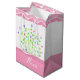 Saco-presente de papel com formato rosa e design floral, de formato médio de saco de tote. O texto pode ser personalizado para qualquer nome, mensagem ou texto removível.