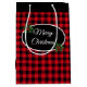 Esta bolsa de presente de Natal é mostrada com uma impressão festiva de xadrez de Natal. Personalize este item ou comprar como está. Imagem do stock freepik.com all-free-download.com