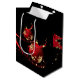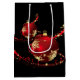 Saco de presente de Natal mostrado em um festivo impressão de ornamentos de Natal vermelho e ouro. Personalize este item ou comprar como está.