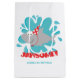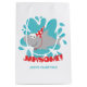 Saco de presente de tubarão de aniversário com nome e número de aniversário.