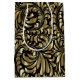 As plumas belas e as pálpebras em ouro "metálico" são lindamente dramáticas contra um negro como fundo noturno neste design incrivelmente elegante, gerado por computador. Dourado, como vocês devem saber, simboliza riqueza e resistência enquanto o negro é o epítome da formalidade, elegância, atração e mistério. Não admira que estas duas sejam uma das combinações de cores de "potência". Este saco de presentes maravilhoso é realmente uma escolha fantástica para praticamente qualquer ocasião, mas particularmente apropriado para casamentos formais e 50º aniversários.
