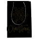 Sacola Para Presentes Média Saco Preto com Floco de Neve Dourado de Natal