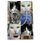 Impressão de gatos, sacos de presentes de papel. Gatinho bonito encara o cobrir de colagem em qualquer saco.
