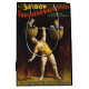 Subam, pessoal! Testemunhem a maravilha da era moderna, o colosso esculpido do próprio granito, O Sandow! — Mais forte que um alce, mais resistente que uma roda de carroça, esse alemão não é só músculo, ele é uma sinfonia de força! Agora, o Trocadero Vaudevilles não é sua velha e empoeirada casa de ópera, não senhor! Este aqui é um palácio de entretenimento, uma gaiola dourada para os espetáculos mais estupendos deste lado do Mississippi! E hoje à noite, seus filhotes de armas sortudos podem ver Sandow em toda sua glória! Mas guardem seus chapéus, pessoal, porque Sandow não está aqui para levantar pesos de rico! Esta noite, ele vai reescrever as regras do potencial humano! Imaginem isto: dois homens adultos, fortes o suficiente para fazer um batedor de primeira mão, assobiados em cestos de vime como carga de precioso. Agora, imagine essas cestas balançando de uma campainha, mais grossas que o braço de um marinheiro! E aquela campainha, pessoal, que é balanceada nos ombros de um homem esculpido pelos deuses - é Sandow! A multidão suspira! Mães agarram suas pérolas! Até os cowboys mais duros não podem deixar de se sentir admirados. Sandow está ali, um Hércules humano segurando o peso de dois homens com apenas um braço! Seus músculos se tocam como salsichas sobrecarregadas, veias como rios em um mapa, e a campainha nem se mexe! - Uma batida de silêncio atordoado pendura pesado no ar. Então, a barragem quebra! A multidão irrompe em um rugido, uma cacofonia de torcida, assobios e estômagos que podem sacudir as fundações! Os chapéus voam para o ar, a pipoca espalha-se como uma tempestade de granizo, e as mesmas tábuas tremem sob os tremendos aplausos. - Sandow, com um sorriso que poderia acender um carnaval à meia-noite, lentamente baixa a campainha. A multidão enlouquece de novo, a sua adulação ecoando pelo Trocadero. Isto não é só um espetáculo, pessoal, isto é um milagre! Um testamento do poder do corpo humano, um espetáculo que vai deixar-te de briga-branca e implorar por mais! Então não perca sua chance de testemunhar o lendário Sandow! Ele estará aqui a semana toda, pessoal, admirando plateias e bendindo as próprias leis da física! Mas depressa, porque uma visão tão magnífica não vai durar para sempre! — Criada por The Strobridge Lith Co. Cincinnati & New York em 1894. Esse trabalho está no dominio público nos Estados Unidos porque foi publicado (ou registrado no Escritório de Direitos Autorais dos Estados Unidos) antes de 1º de janeiro de 1927.