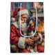 Sacola Para Presentes Média Santa Claus Holding Bluetick Coonhound Christmas
