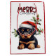 Sacola Para Presentes Média Santa Hat Holly Rottweiler Puppy Natal