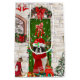 O Natal do santo Bernard Dog sentado do lado de fora da casa decorada com coroa de Natal, a árvore de Natal é uma ideia perfeita de presente de Natal para amantes de cães.