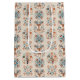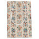 An intricate blue and tan pattern of Scandinavian folk art deer and snowflakes