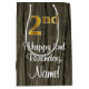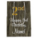 Este na moda, luxuoso e elegante design de sacola de presente com tema de aniversário apresenta um grande número ordinal de "segundo" com aparência de ouro falso/imitação, além da mensagem de saudação de aniversário "Happy segundo aniversário" e um nome de destinatário personalizado em uma fonte estilo script. Também tem um padrão de fundo falsa inspirado em madeira. Um saco-presente sofisticado como este pode ser usado quando se dá um presente ou um presente em honra do segundo aniversário de alguém. [~Z0000520]