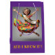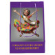 Sim, senhor! Ela conseguiu! A senhora está feliz porque ela se aposentou oficialmente, então ela está alegremente pulando e de agora em diante ela terá tempo para si mesma. Ela está vestindo um vestido brilhante colorido que combina com seus calçados. A faixa no peito dela lembra-lhe que ela acabou de passar. Saco de presentes de papel personalizável para felicitar seu amável colega de trabalho.
