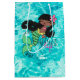 Uma sereia personalizada adorável projetada em um fundo de água. Disponível em loura, preta, castanha, cabelos vermelhos e afro-americanos.