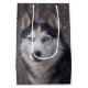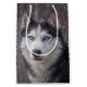 Esta pintura digital representa um Husky Siberiano sobre a neve, seu pelo brilhando com realces gelados enquanto a paisagem de inverno se estende infinitamente atrás dela. Os olhos expressivos do cão chamam a atenção do espectador.