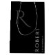 Este saco de presente personalizado preto apresenta o nome de padrinho de casamento personalizado e o monograma de caligrafia em cinza. Altere as cores de fundo e fontes facilmente se desejar.