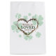 O dia do Patrick, presenteie os outros com a bela verdade de que as riquezas dos Cristos adoram apenas sorte! Este saco de presentes mediano, inspirador de fé, apresenta uma coroa cardíaca de espinhos aninhados sobre um fundo de xamrochas irlandesas. Lê-se: "Não Sortudo, Simplesmente AMA." junto com o discurso de bíblia dos romanos 8:31-39, que nos lembra da promessa de Deus de que aqueles que estão em Cristo nunca podem ser separados de Seu amor. O verso exibe um trecho da passagem Romano 8 enquadrado por mais vergonhas. Uma maneira adorável de espalhar a Boa Notícia de que não há necessidade de crentes buscarem um pote de ouro quando Sua presença é a melhor sorte possível vivida nesta vida e além dela!