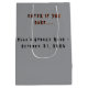 Este saco de presentes com o tema do Dia das Bruxas apresenta um design arrojado com uma grande abóbora laranja, um fantasma branco esboçado em azul, uma árvore assustadora com braços semelhantes a galhos, morcegos voadores, e uma lua azul-clara brilhante — tudo colocado contra um fundo de cinza macia. A frase "Spooky Vibes" aparece na fonte preta do Gatekeeper com uma sombra laranja, adicionando um talento gótico. No verso, a frase "Enter se você ousar..." é estilizada em fonte e cor correspondentes, seguida de detalhes personalizados do evento, como Ella's Spooky Bash e a data. Perfeito para festas de Halloween, festas assustadoras, ou presentes festivos em outubro.