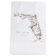 Bolsas de boas-vindas para convidados de casamento em um evento de casamento tropical na praia, na Flórida. Personalize com texto azul aqua personalizado em ambos os lados. O casal é representado por estrelas-do-mar castanhas e azuis, com um mapa do estado da Flórida no verso. Uma estrela laranja brilhante mostra a localização (Key Largo) neste design de amostra. (O mapa pode ser excluído!) Entre em contato comigo para especificar o local do casamento na Flórida ou excluir tudo - imagem e texto - ao contrário. Farei com prazer outra mala para você.
