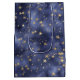 Watercolor illustration of a dark blue night sky with golden bright shining stars. Customize by adding your own text!
