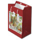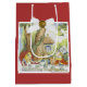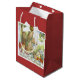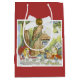 Saco vermelho médio com uma imagem antiga Alice no País das Maravilhas, de ambos os lados, da festa de chá do Mad Hatter com Alice, The March Hare e Dormouse. Veja toda a coleção Wonderland Gift Bag nos TOUCHES ESPECIAIS | Seção Favoritos para festas.