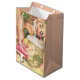 Saco de presente brilhante, cor-de-rosa médio, com uma imagem antiga Alice no País das Maravilhas, na frente, de Alice espreitando atrás de uma árvore na festa de chá de Mad Hatter em progresso com o Mad Hatter, March Hare e Dormouse, do artista A. H. Watson (1939). Veja confetti correspondente, bolsa de favor, caixa de favor, etiqueta de presente, etiqueta e papel de embalagem. Veja toda a coleção Wonderland Gift Bag nos TOUCHES ESPECIAIS | Seção Favoritos para festas.