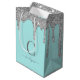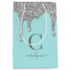 Sacola Para Presentes Média Teal Aqua Silver Sparkle Glitter Drives Monograma