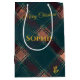 Sacola Para Presentes Média Teal, Borgonha e Xadrez marrom personalizados no N