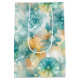 Sacola Para Presentes Média Teal Yellow Floral Alcohol Ink Style Wine, Small,