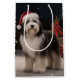 Sacola Para Presentes Média Tibetano - Cão terrier no Natal da neve