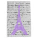 Design original com Torre Eiffel roxa. Confete prateado ao fundo.