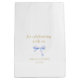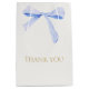 Estas bolsas bonitinhas e bonitas de casamento brancas apresentam um 'obrigado você' em uma cor de ouro falso chic, um nó de fita azul de tendência e texto opcional no verso juntamente com nomes de casais e data.