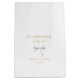 Estas bolsas bonitinhas e bonitas de casamento brancas apresentam um 'obrigado você' em uma cor de ouro falsa, uma fita branca tendenciosa e texto opcional nas costas juntamente com nomes de casais e data.