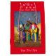 Os três reis nesta bolsa de presentes de natal estão oferecendo seus presentes a José para o bebê Jesus. Os reis estão vestidos de vestidos coloridos e estão vestindo coroas de joias incrustadas, ou são os três sábios? Eu criei esta cena tradicional de natal ingênuo do estilo Fimo e outros pedacinhos e peitos. A cena da natividade é colocada contra um fundo desértico pintado à mão. Um saco de presentes de vinho muito tradicional para a época festiva.